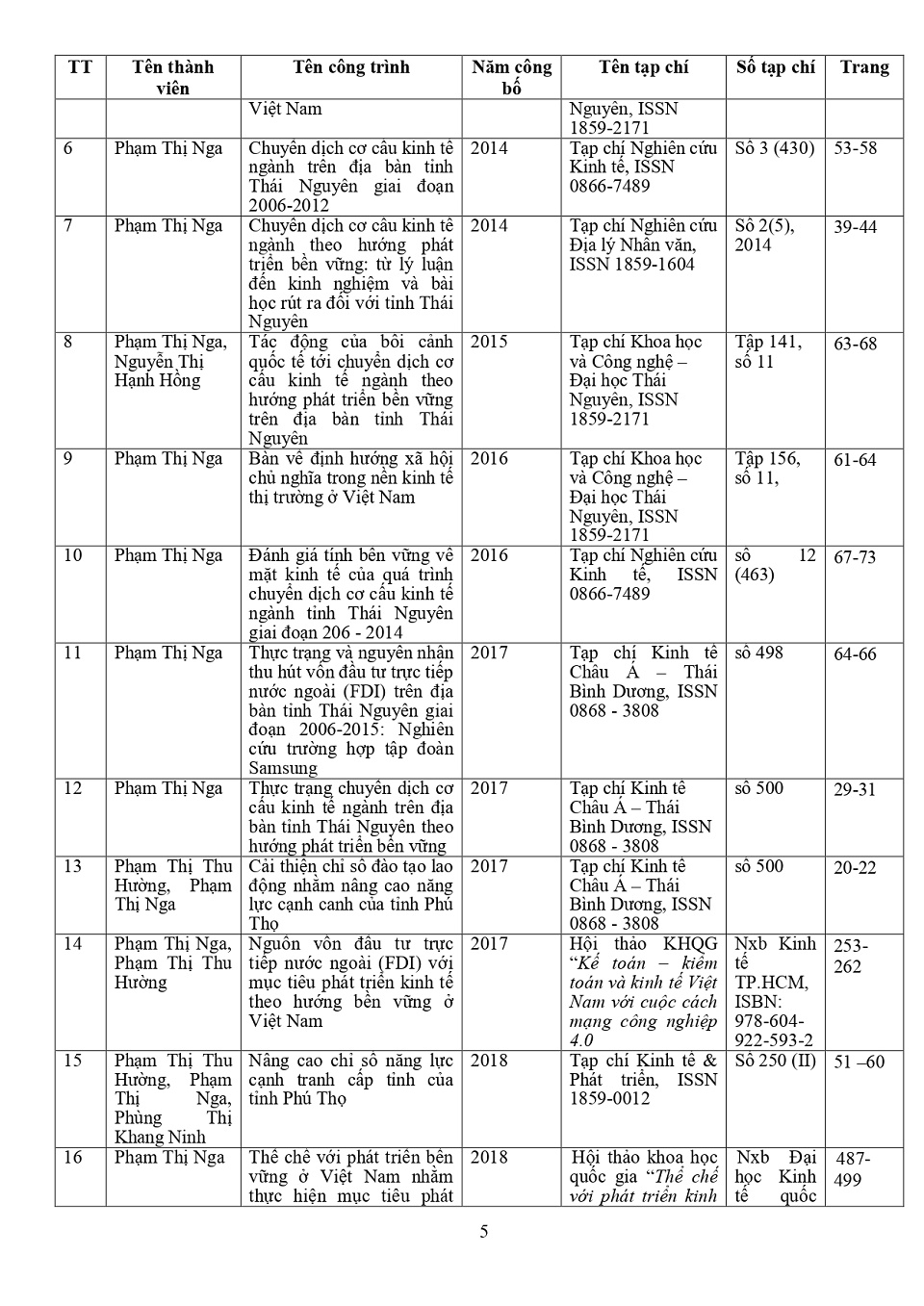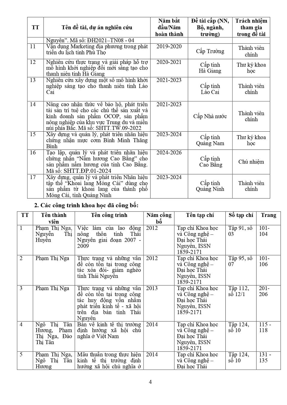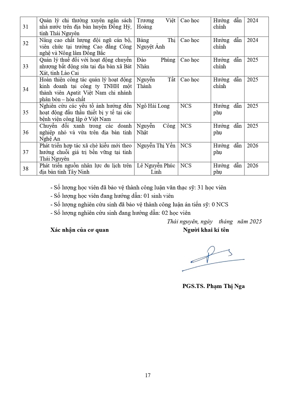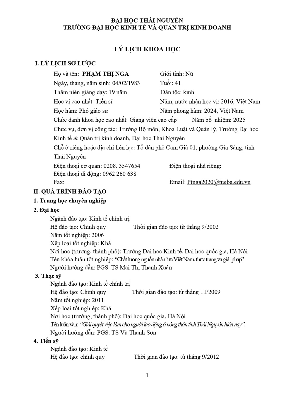 Lý lịch khoa học: PGS. TS. Phạm Thị Nga