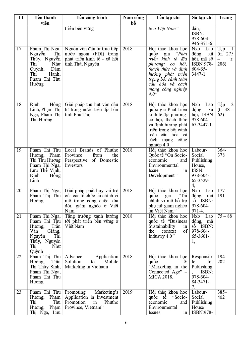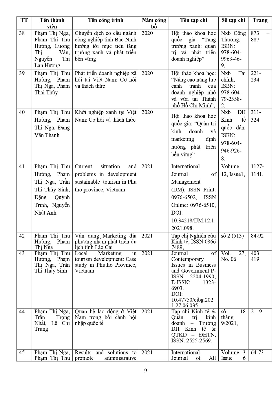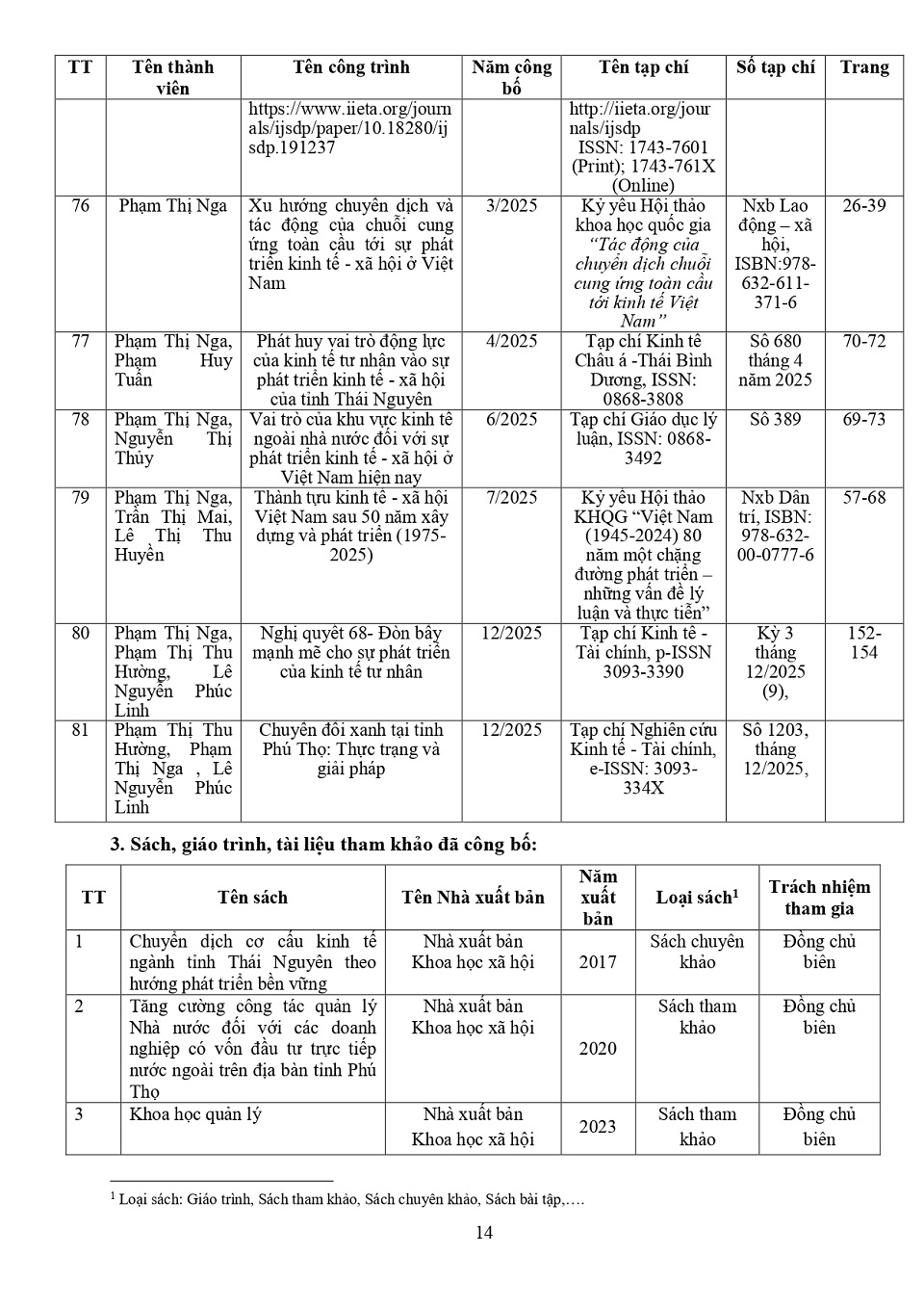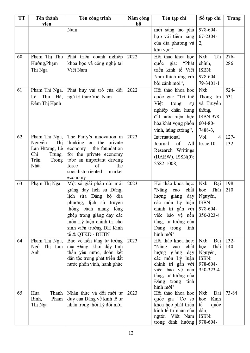 Lý lịch khoa học: PGS. TS. Phạm Thị Nga
