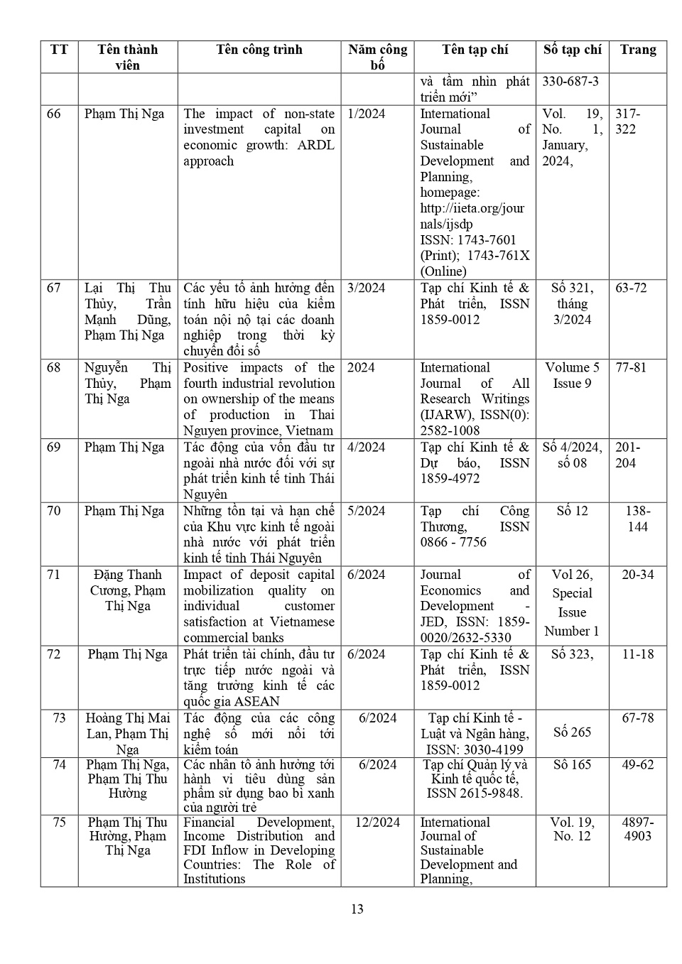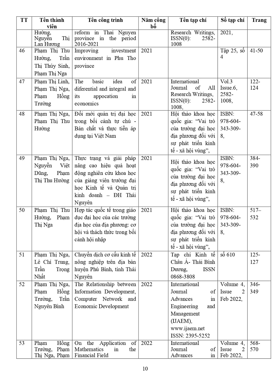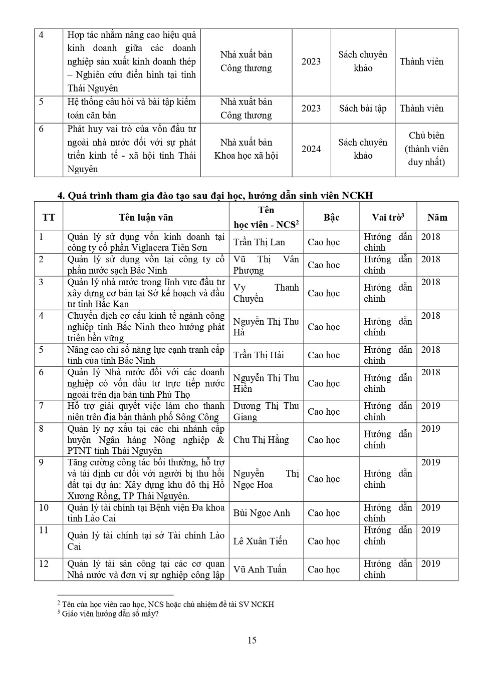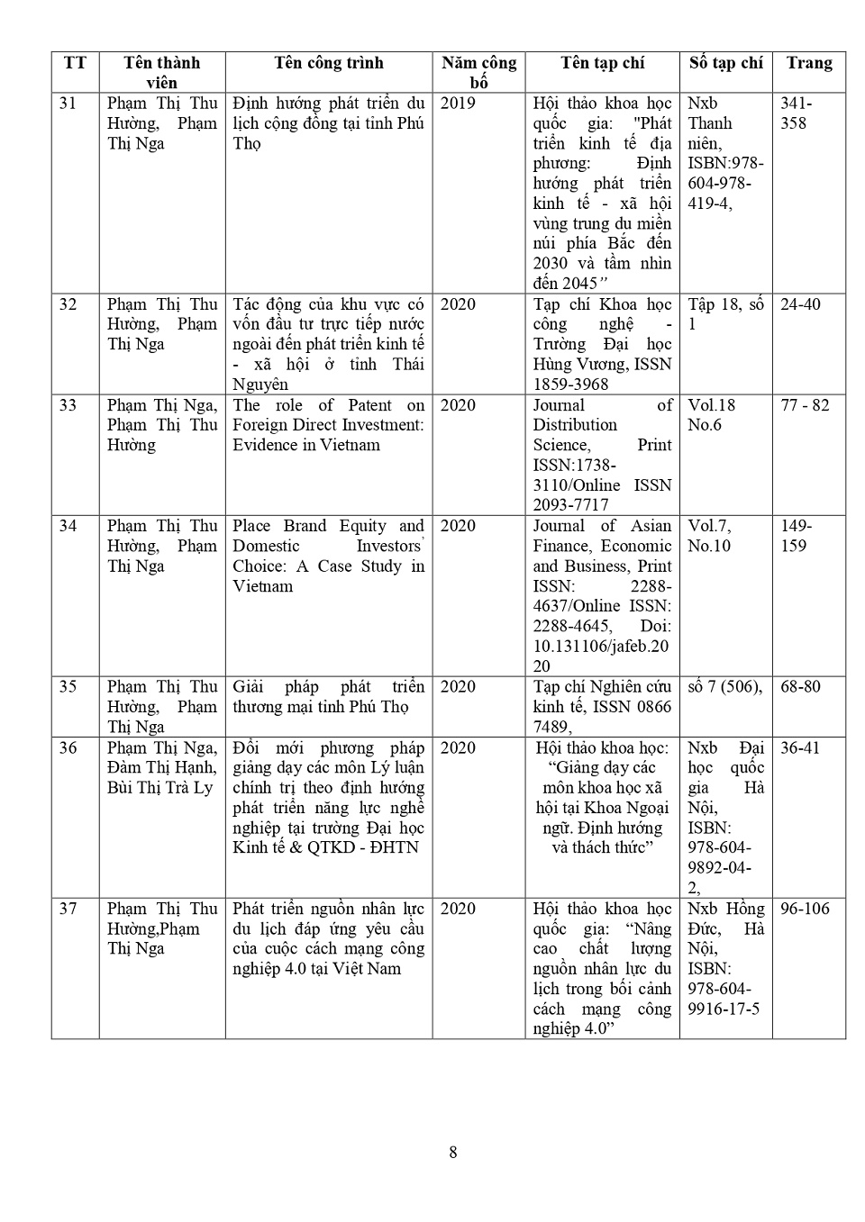 Lý lịch khoa học: PGS. TS. Phạm Thị Nga