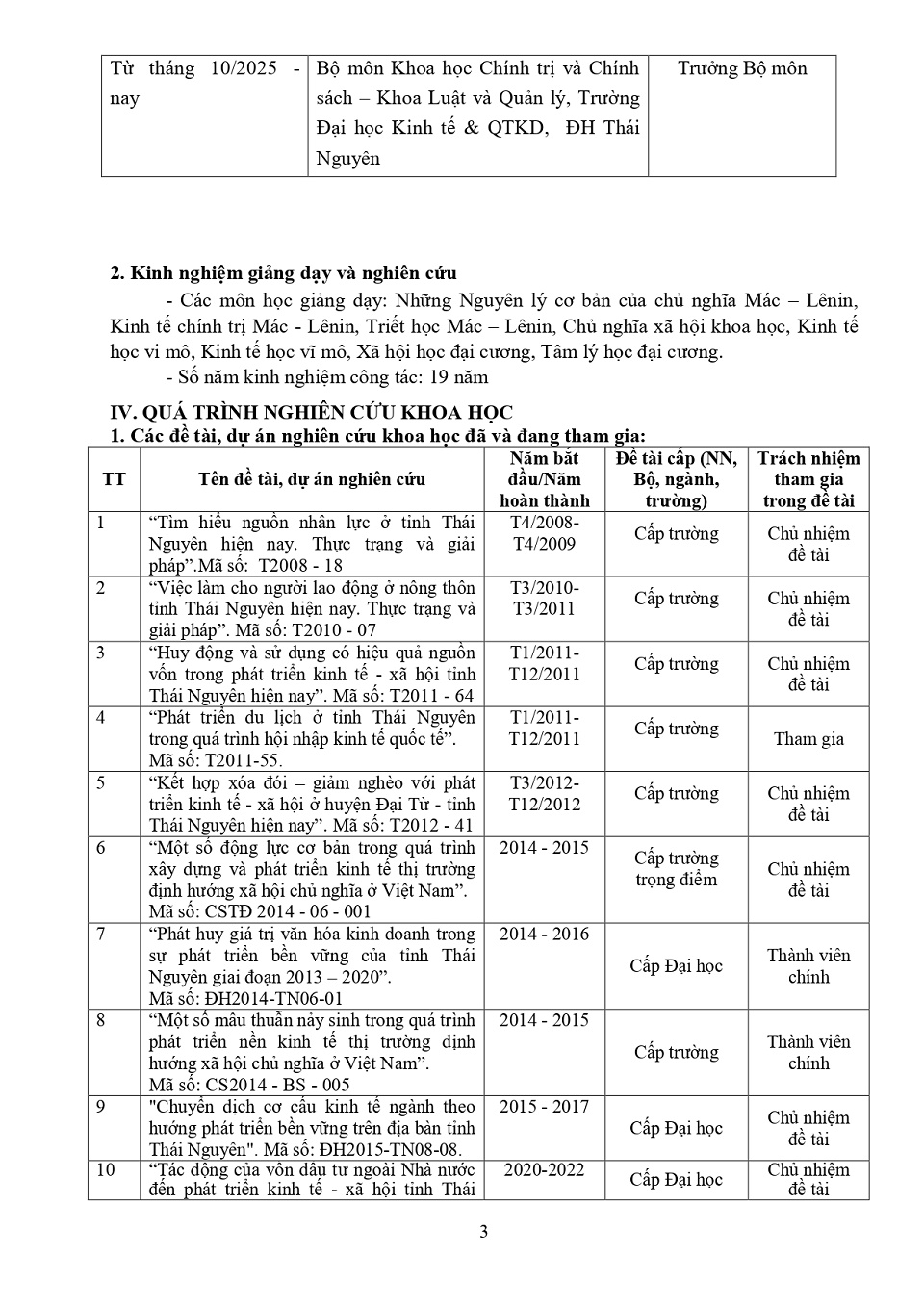 Lý lịch khoa học: PGS. TS. Trần Chí Thiện